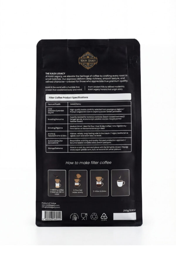 Kaldi Legacy’de kahve çekirdeklerimizi sorumlu bir şekilde tedarik ediyor, etik uygulamalara, izlenebilirliğe ve kahve yetiştirilen topluluklara saygıya önem veren güvenilir iş ortaklarıyla çalışıyoruz. İnsanları ve toprağı gözeten sürdürülebilir tarım yaklaşımlarını bugün ve gelecek için desteklemeyi hedefliyoruz.